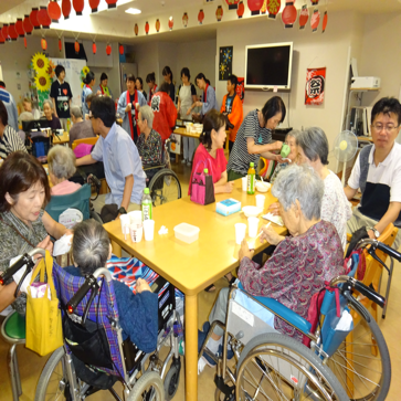 昨年はプロのアーティストの方をお呼びしてコンサートを行いました。とてもパワフルな演奏で、手拍子をして一緒に歌われる方や涙を流し握手される方もいて、皆さん笑顔で楽しまれていました。昼食では祝い膳を準備し、いつもとは違う食事メニューで喜ばれていました。