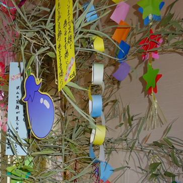 入居者様だけでなくご家族や職員も書いた短冊をみんなで飾りつけしました。昨年は、ボランティアの方たちによる演奏会もあり、華やかな七夕となりました。