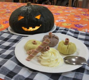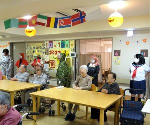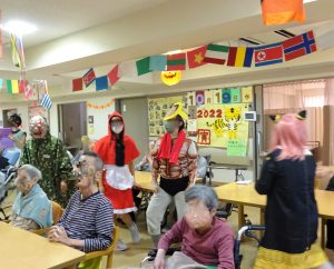 ハロウィンパーティー🎃 2022/11/21 月曜日 余暇活動 今年もハロウィンパーティーを開催しました♪ 職員達の仮装姿に「すごい!」「可愛いね~。」と明るい声が😊 入居者の皆様も仮装して、記念撮影💖 とっても素敵です♪ 職員達とも一緒に記念撮影😊 迫力がありますね~(笑) おやつは、くすのき特製「さつまいもとかぼちゃの茶巾しぼり」♪ 厨房協力のもと、かぼちゃをキレイに型抜きして、明かりを灯しました✨ 映えてます👌♪ 楽しいハロウィンパーティーでした🎃 特別養護老人ホーム くすのき