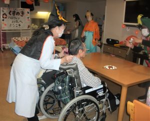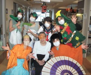 👻ハロウィン🎃 2021/11/18 木曜日 余暇活動 10月下旬、ハロウィンパーティーを行いました。 今年も職員が張り切って仮装😊 セーラー服の美女💖…クリスマスツリー🎄… 施設長は魔女に☆彡♪ くすのきの染之助染太郎が登場😊 おめでとうございま~す!🙌 入居者の皆様と記念撮影📷♪ 可愛らしいトトロもいました💖 おやつは特製ハロウィンケーキ😊 入居者の皆様の笑顔がたくさん見られ、賑やかな楽しい時間でした。 特別養護老人ホーム くすのき