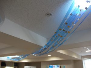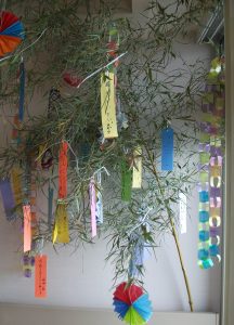 七夕☆彡 2020/7/09 木曜日 行事 七夕の会を行いました。 1階の施設玄関と3階の入居スペースに笹が飾られ、 短冊には入居者様と職員の願い事が書かれています。 天井には天の川が☆彡 七夕の歌を歌い、流しそうめんならぬ、 『流しお菓子大会』♪ お菓子のキャッチを楽しんでいらっしゃいました😊 おやつは七夕らしく涼しげな『水ようかん』でした。 特別養護老人ホーム くすのき