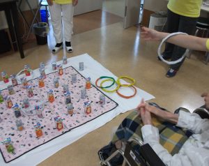 輪投げでジュースをゲットしたり、お菓子釣りをしたり、