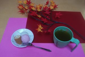 おやつは紅白饅頭を召し上がって頂きました♪
