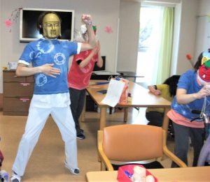 👹節分👹 2021/2/09 火曜日 行事 2月3日に節分の行事を行いました。 「鬼は~外、福は~内」 賑やかに、みんなで鬼退治をして福を呼びました。 あら?鬼ではない方もいらっしゃったようです(笑) おやつは可愛らしい鬼のロールケーキ♡ 「可愛いね~!」「美味しいね~!」と、皆様とても喜ばれていました。 これからも季節の行事を大切にしていきたいです。 特別養護老人ホーム くすのき