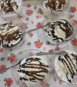 おやつはアイスをのせたロールケーキを召し上がって頂きました💖