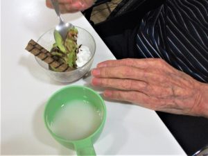 🌸お花見会🌸 2022/4/18 月曜日 行事 施設の入り口にある桜が、今年もきれいに咲きました✨ 春ですね~🌸 優しいピンク色の桜に癒されました。 入居者の皆様も外で桜を眺め、「きれいだね~。」「よく咲いてるね。」と笑顔で話しされていました😊 お花見会では、春の曲を歌ったり、 抹茶アイスを召し上がって頂きました♪ 「美味しい!」「最高!」と喜んでくださり、和やかな時間を過ごすことができました😊 特別養護老人ホーム くすのき
