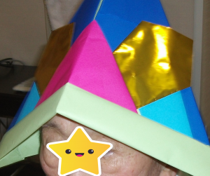 職員お手製の兜を頭にかぶり、何だか勇ましい✨