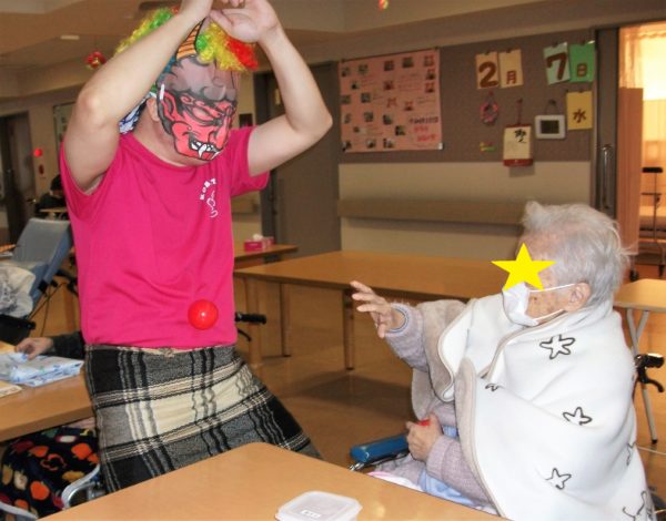 節分2024👹 2024/3/19 火曜日 行事 2月7日に節分の会を行いました😊 今年も元気な逞しい鬼が登場👹 衣装がカラフルでとても目立っていました(笑) 「鬼は~外!」「えい!」「それ!」と元気に声を出しながら鬼退治。 気合いが入っています♪ 皆で協力して鬼をやっつけることができました😊🙌🙌🙌 とても賑やかで楽しい節分の会となりました✨ 特別養護老人ホーム くすのき