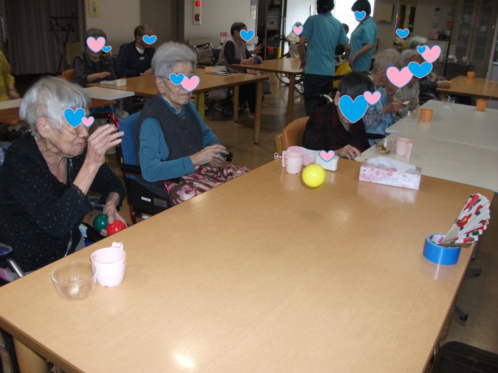 おやつのあとは、お座敷遊びを模した団扇倒しに挑戦!皆さま、いとも簡単に倒しておりました😁