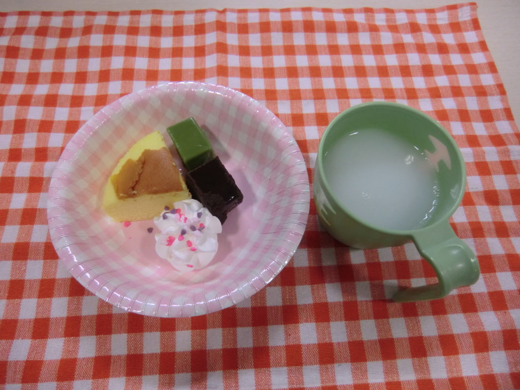 七夕にちなんだ話を聞いた後は、台湾カステラと二種類のケーキを提供させていただきました。